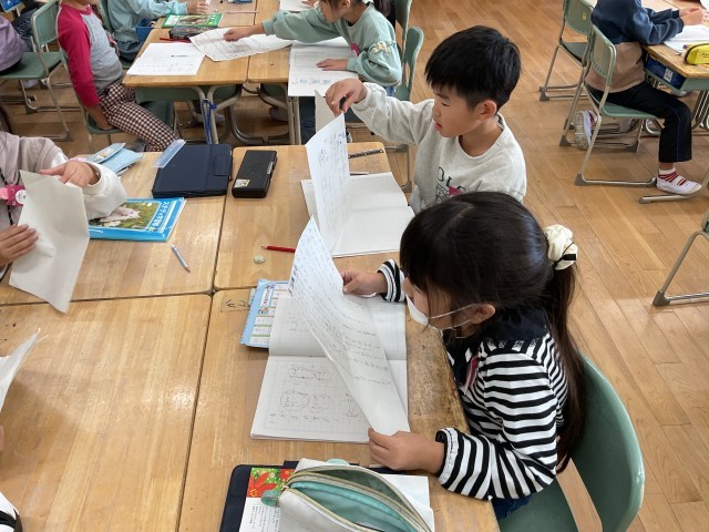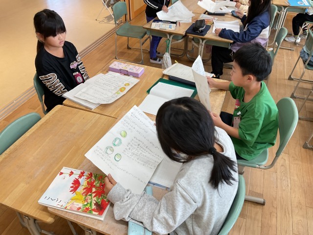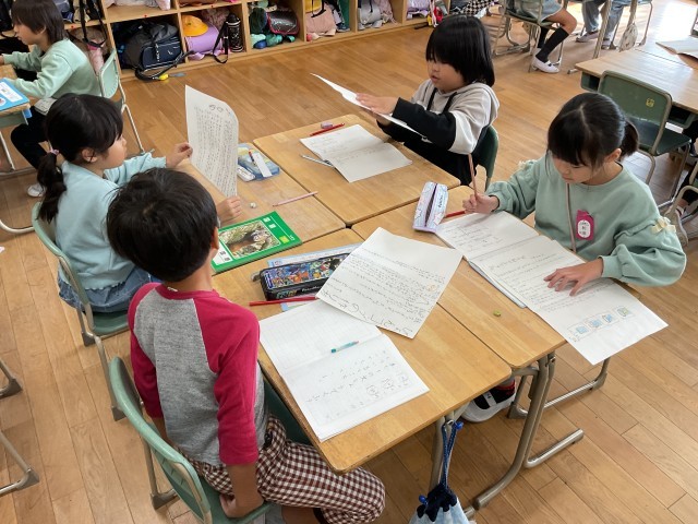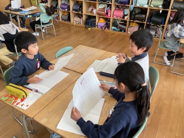 書いた文章を友達と読み合い、工夫しているなと思ったところを伝え合いました。