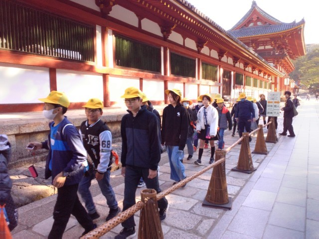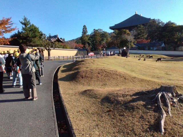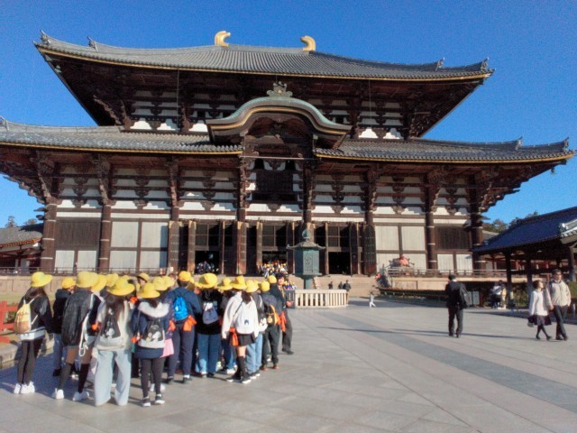 ホテルから東大寺までは徒歩10分です。大仏殿の見学とともに、鹿に会えるのがとて楽しみな子どもたちです。