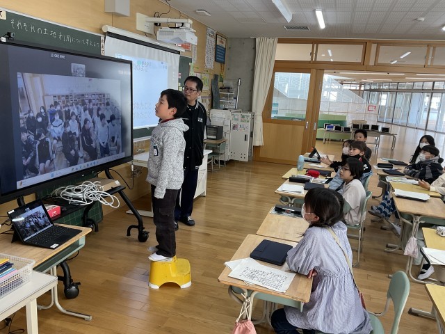 先週に続いて、4年生が海津市の小学校と遠隔で社会科の合同授業を行いました。