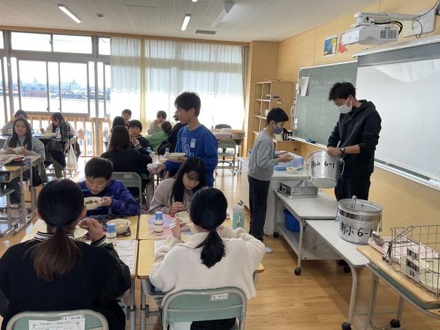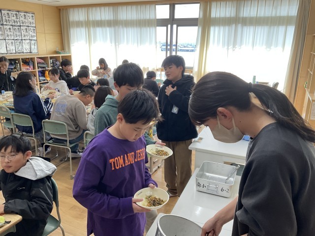 本日の献立は、麦ごはん、トックスープ、野菜シューマイ、ビビンバ、でした。子どもたちに人気の高い献立で、6年生の教室では、おかわりをする子がたくさんいました。12月に入り、今週は冬の寒さになるという天気予報を聞きました。登下校時とエアコンの効いた教室では体感温度が全く違います。着脱で体温調節ができるようにしましょう。首、手首、足首を温めるとよいと言われますね。足首まである靴下にし、外ではマフラー、ネックウォーマーや手袋を付けて調節しましょう。それぞれの小物には、必ず記名をしてくださいね。