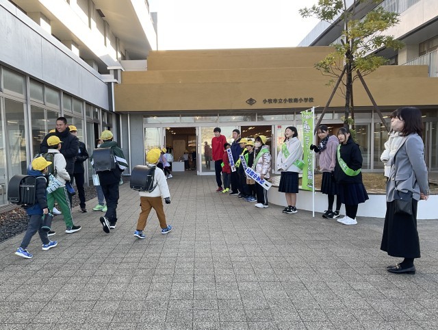 今朝は、「 南小学校&応時中学校 一緒にあいさつ運動」がありました。