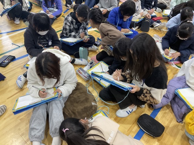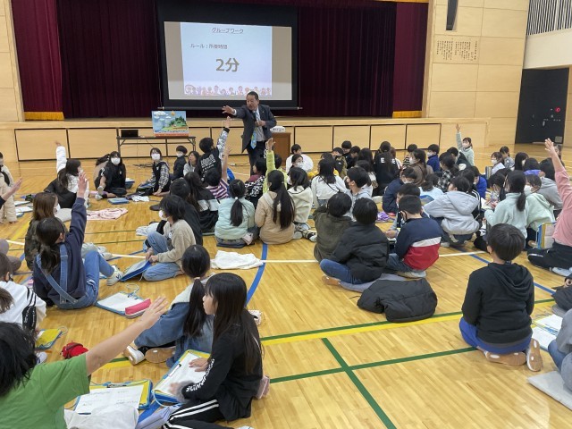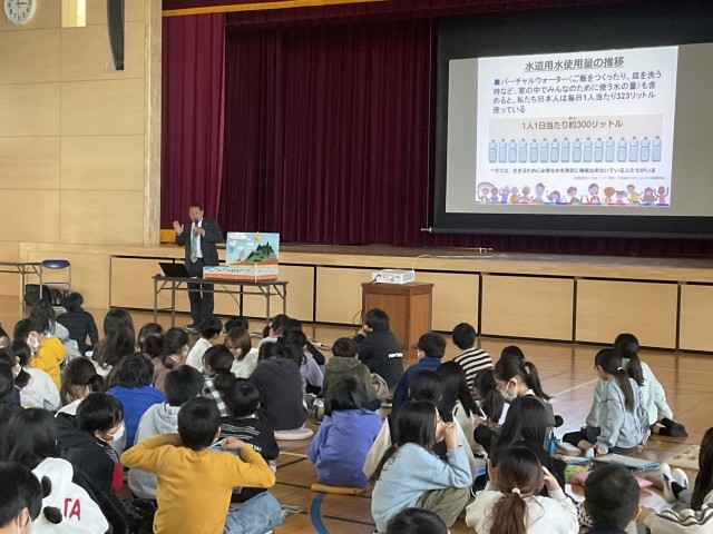 中部フィリピン友好協会の方を迎え、体育館で水についてのお話を聞きました。