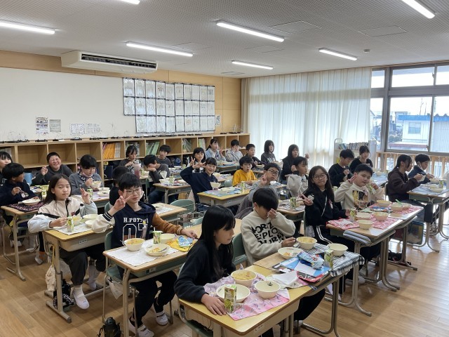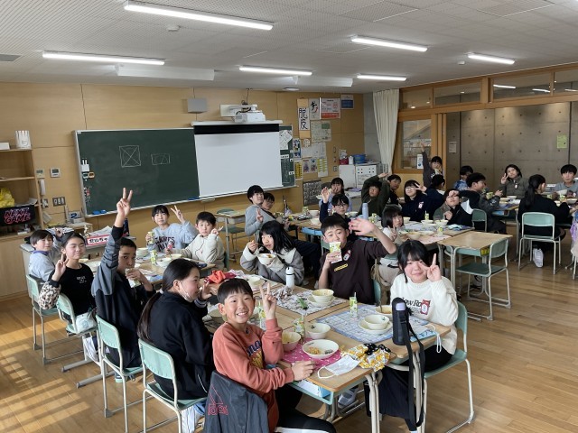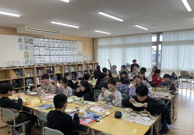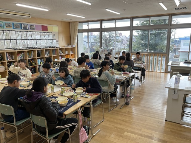 5年生の教室でも美味しそうに食べていました。「夕べもカレーだった!」「うちも!」「先生の家も!」とカレーの話題で盛り上がっているクラスもありました。