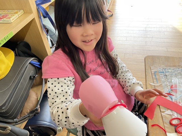 紙コップを使って、「ぱくぱっくん」を作っていました。