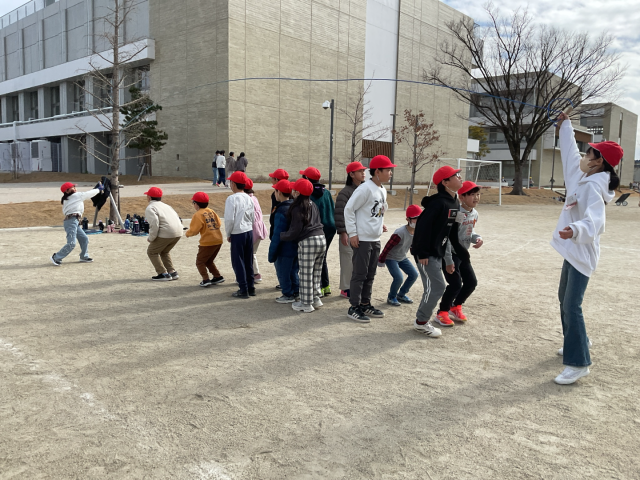 運動場ではドッジボールや長縄、体育館では手つなぎおにをして楽しみました。