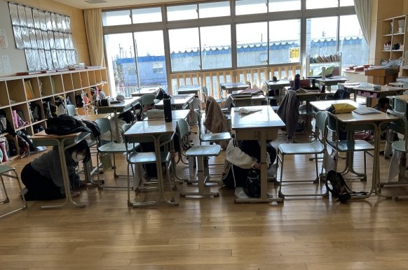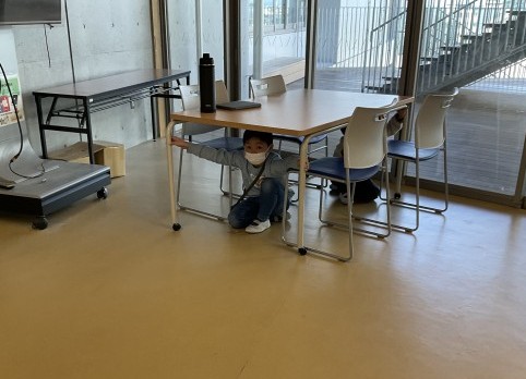 長い放課なので、子どもたちは学校中のさまざまな場所に散らばっていました。多くの子はその場で机の下にもぐったり、その場で頭を抱えてしゃがんだりと第一次避難行動を取ることができましたが、中には、びっくりして大きな声を出してしまった子、廊下にいたのに教室に戻ろうとした子などもいました。