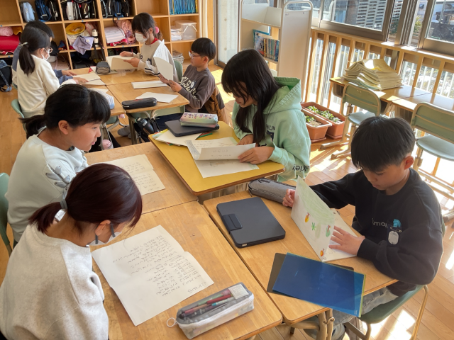 作った詩集をグループの仲間と読み合い、よさを伝え合いました。