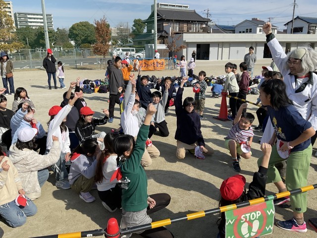 時間が経過したところでマスターからミッションの指示。ダンボールを積み上げたり、ハンターが背負うかごにボールを入れたり…見事、ボールをかごに入れると歓声が上がりました。