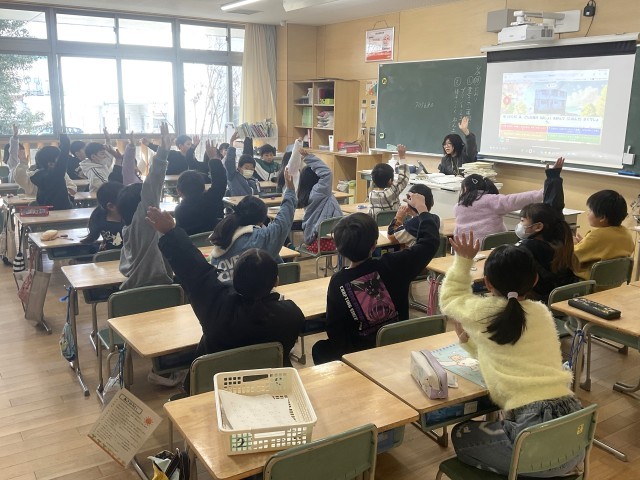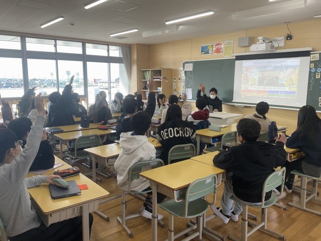 それぞれの教室からは4択の答えや色・番号を言う声、正解して盛り上がる声が聞こえてきました。