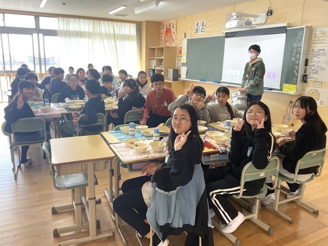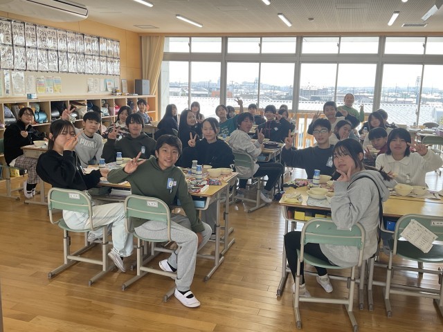 6年生の教室におじゃますると、みんな笑顔で写真撮影に応えてくれました。