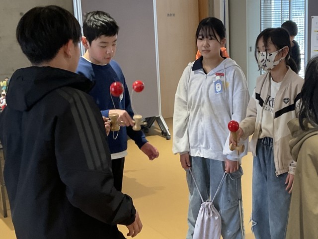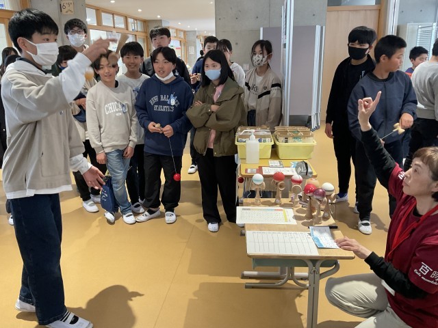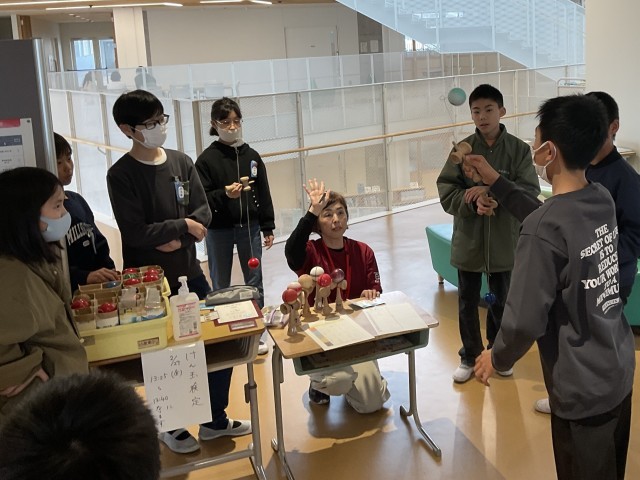 昼放課に地域コーディネーターさんが来てくださり、けん玉検定を行いました。