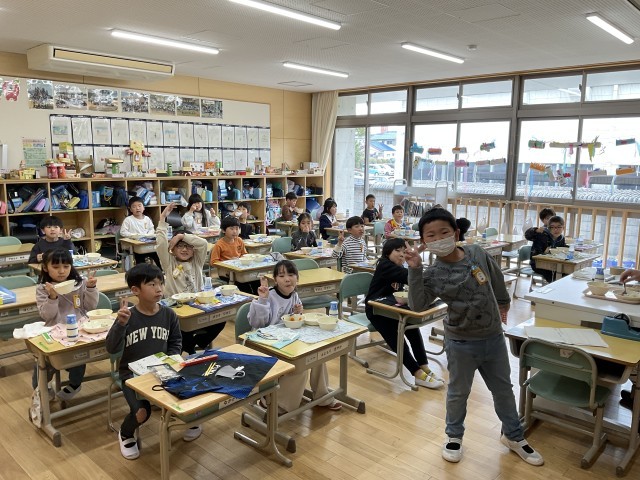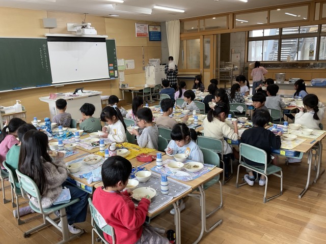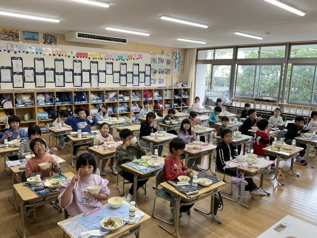1年生の子たちは、食べるのがみんな早くなりました。もちろん、早いことだけがよいわけではありません。健康のためにしっかり噛んで食べることが大切です。早く食べ終わるようになったのは、おしゃべりばかりせず、集中できるようになったからだと思います。準備も協力して早くできるようになりましたね。
