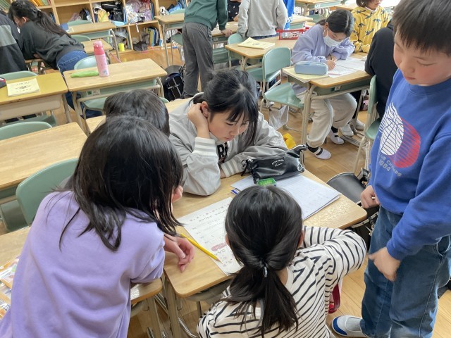 今年度のふり返りをした後、令和8年度の新しい通学班を先生から伝えて、新入生へのお手紙を書いたり、並び順を決めたりしました。