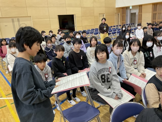 5年生の3つのクラスが合同で合唱練習をしました。