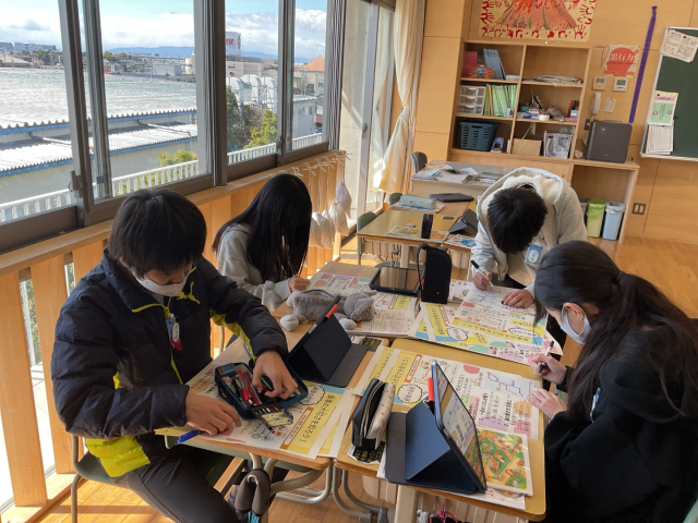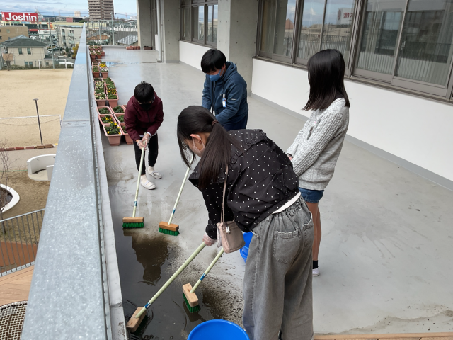 校内の清掃、雑巾づくり、掲示物づくり、掃除の仕方のお手本動画づくりなどを実際に行いました。