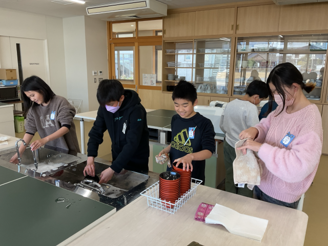 家庭科の時間に、自分たちが学んできたことを生かして学校に恩返しすることを考えて、実行しました。