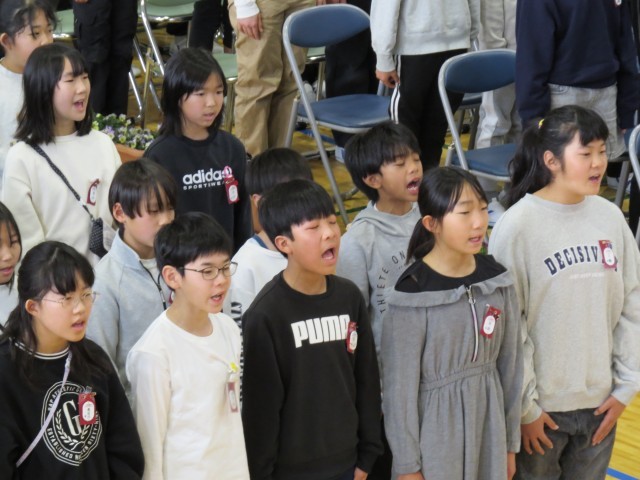 5年生から卒業生へのはなむけに、感謝の言葉、激励の言葉をおくりました。