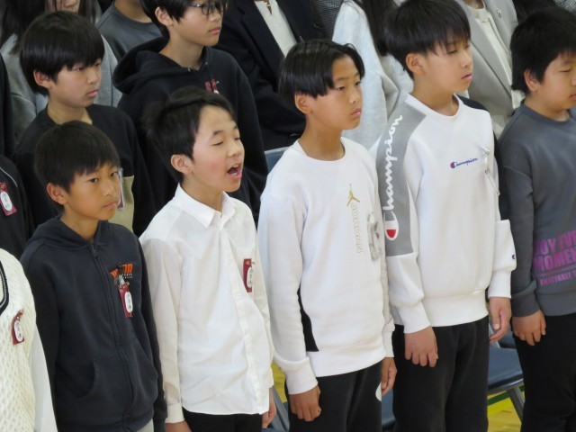 合唱曲「また会う日まで」も含め、在校生の代表として、素晴らしい態度でした。