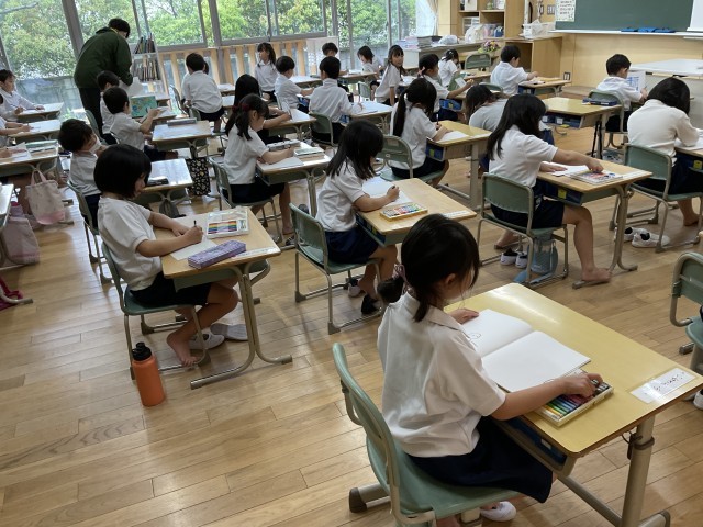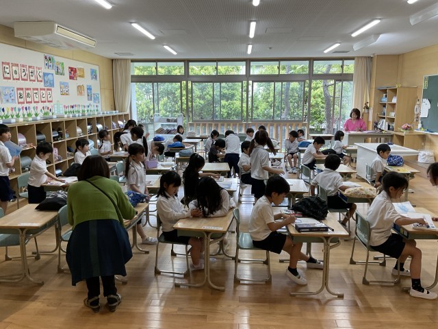1年生はこの後、給食なしで下校しました。保護者の皆様には、通学路の途中までお迎えに来ていただき、ありがとうございました。しばらく1年生下校が続きますので、よろしくお願いします。