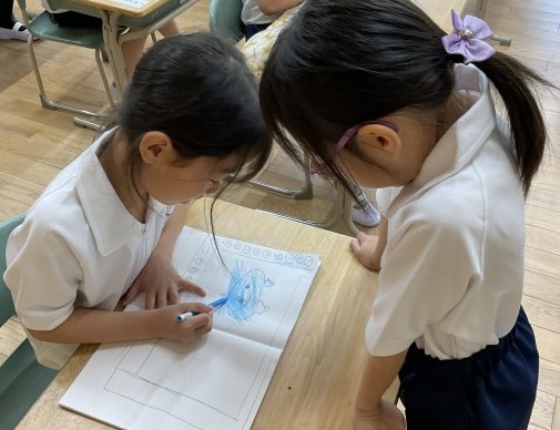 待っているクラスは、絵を描いて過ごしていました。
