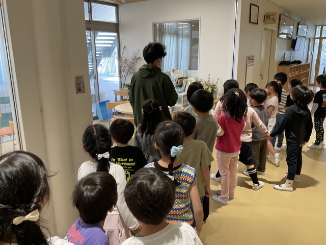 「職員室は先生たちがお仕事をする所だよ、職員室のまわりではうるさくしないようにしようね」と先生から教えてもらいました。みんなとても静かに歩いていて感心しました。