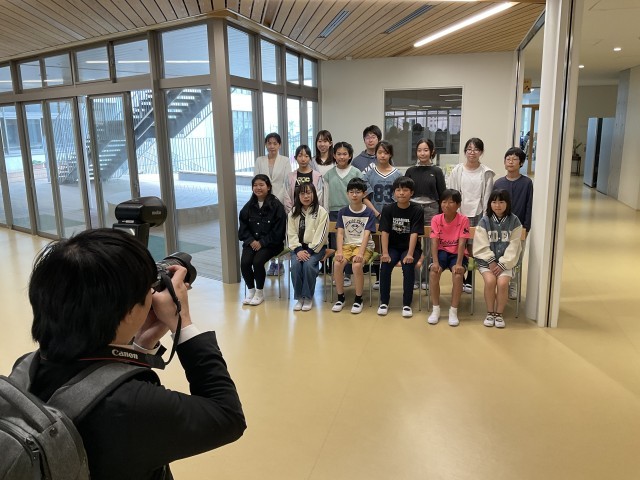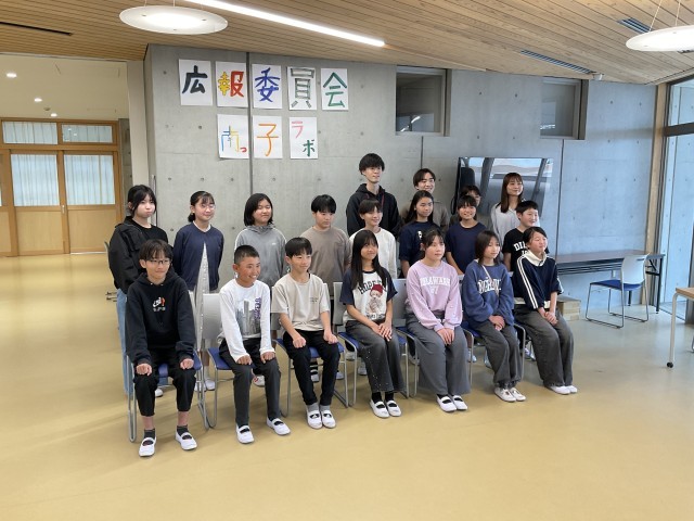 図書委員は図書エリアで、広報委員は南っ子ラボで、放送委員は放送室前で、それぞれ活動に合った場所を選んで撮影しました。