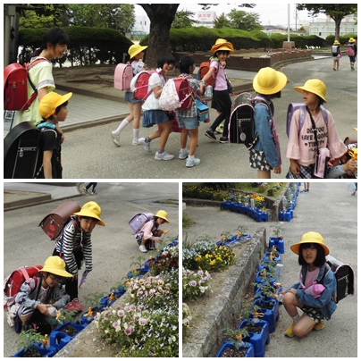 毎朝、学校へきたら苗さんたちに水やり。