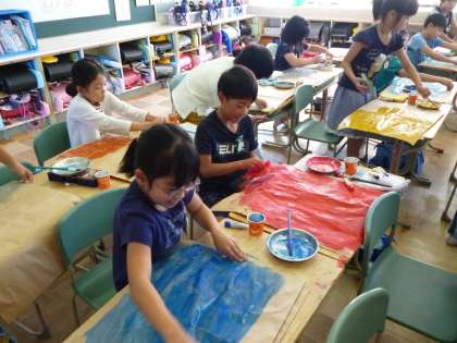 来週、10月17日(木)に、図工競技会があります。2年生は、くしゃくしゃにした紙を使って、自分の好きな「友達」を作ります。図工競技会に向けて、まずは、大きな紙袋に色をぬり、準備を始めました。スポンジを使って、ぬり広げていきました。手を絵の具だらけにしている子もいました。来週、どんな作品ができるか楽しみですね。