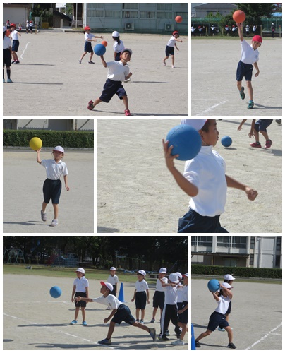 投げる動作は、ひごろあまりしないためか、苦手な子が多くなっています。