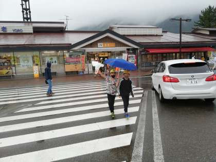 野外学習第1日目、サービスエリア
