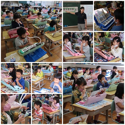 けんばんハーモニカで音が出せてうれしい1年生です。