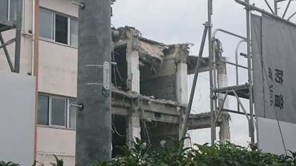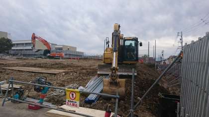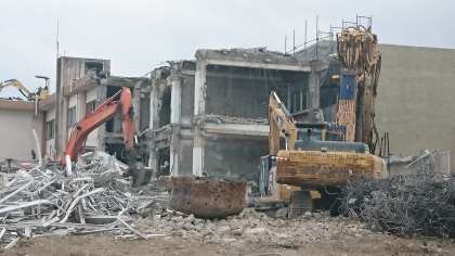 旧校舎の解体と、グランドの整地に向けた整備をしています。