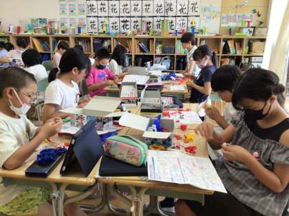 電流のはたらきの学習で、プロペラを回すための準備をしました。