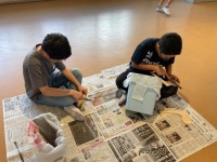 水や食料がなぜ不足してしまうのかという疑問を解決するためにグループで話し合いました。
