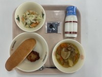 本日の献立は、ミルクロールパン、牛乳、ポトフ、鶏肉のトマトソースかけ、コール...