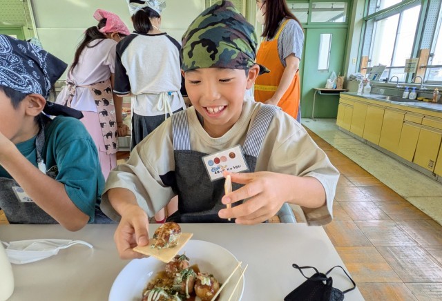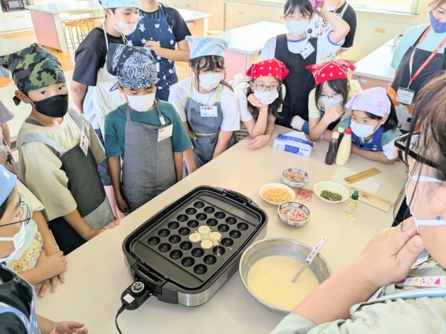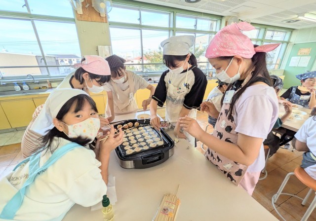 ホットプレートのたこ焼き板を活用し、オリジナルの具材を入れた「たこ焼き」と「ベビーカステラ」を作りました。