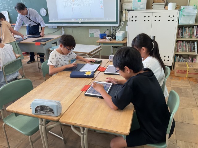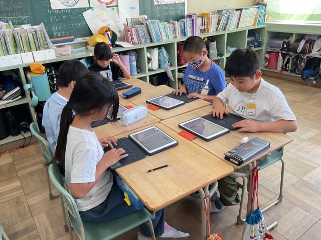今日のICT支援の先生の授業は、ローマ字入力を教えてもらう時間でした。「ホームポジション」という指の位置を教えてもらい、その指づかいを意識してタイピングを練習しました。音声入力をしている子も少しずつタイピングで入力できるように練習していきましょう!