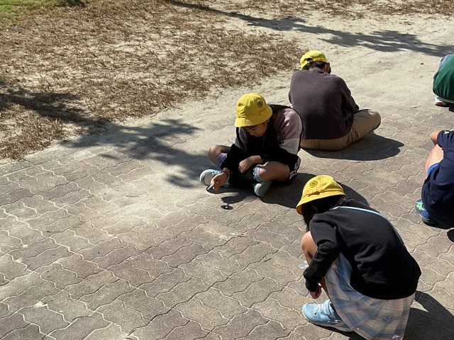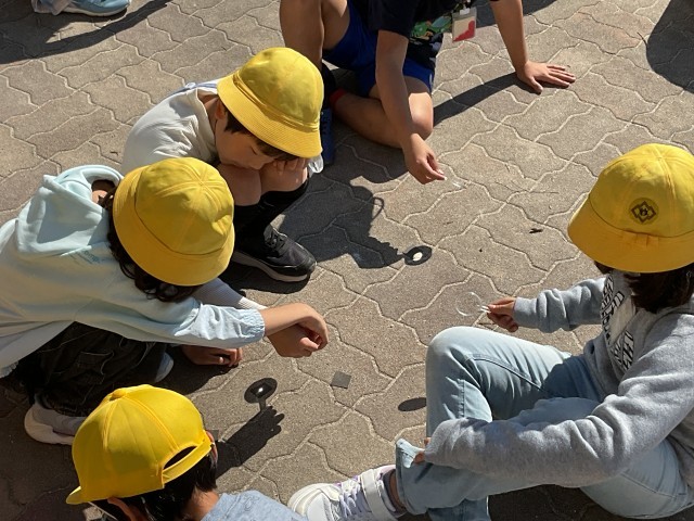 鏡で反射させたり、虫眼鏡で光を集めたりしました。