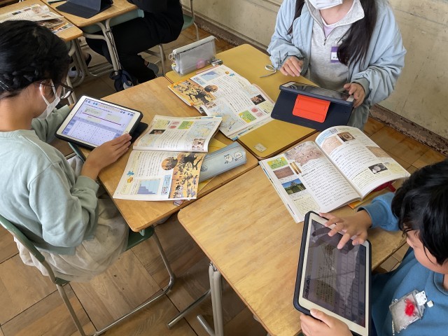 グループで出来事の背景にどんな思いがあったのか確認しながらまとめます。