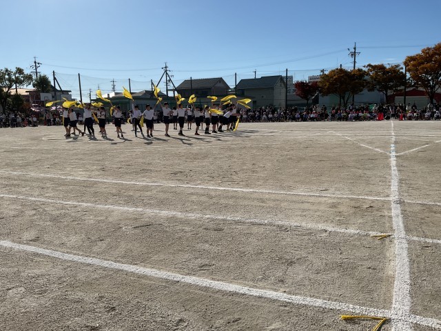 持ち前の明るさでかっこよくダンスを踊り、高学年としての切り替えで、心を一つにスカーフを振りました。