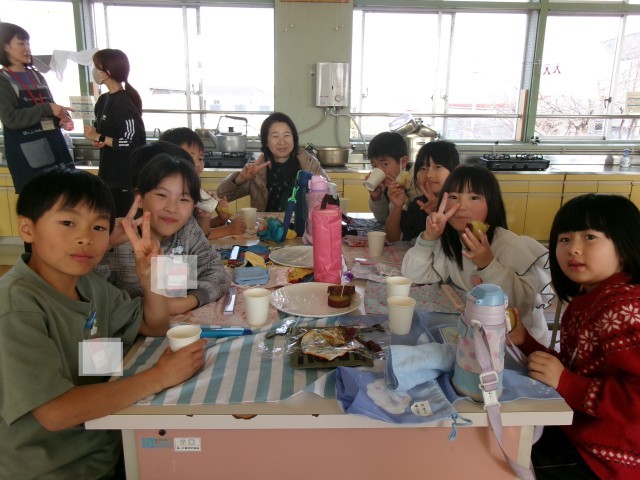サツマイモの収穫のお祝いとして、校長先生や畑のボランティアさんをお招きして、サツマイモパーティーを行いました。