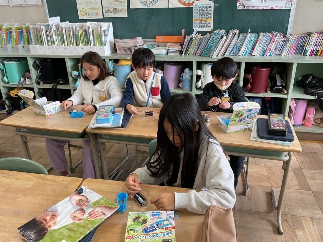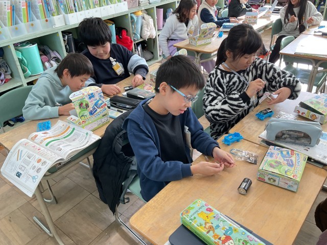 豆電球を使って電気が流れるか確かめてみました。
