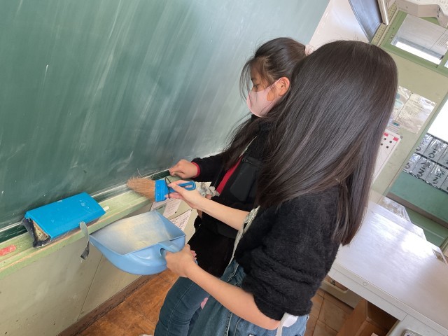 自分たちで使った教室を美しく保とうと一生懸命掃除をしてくれています。