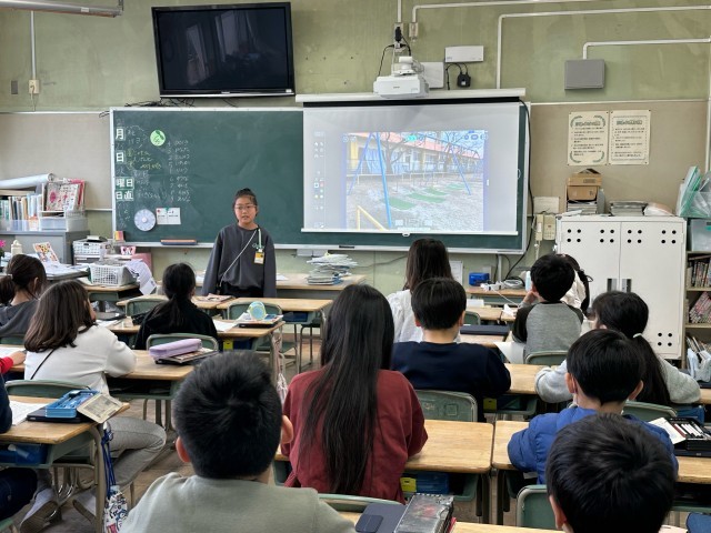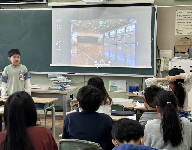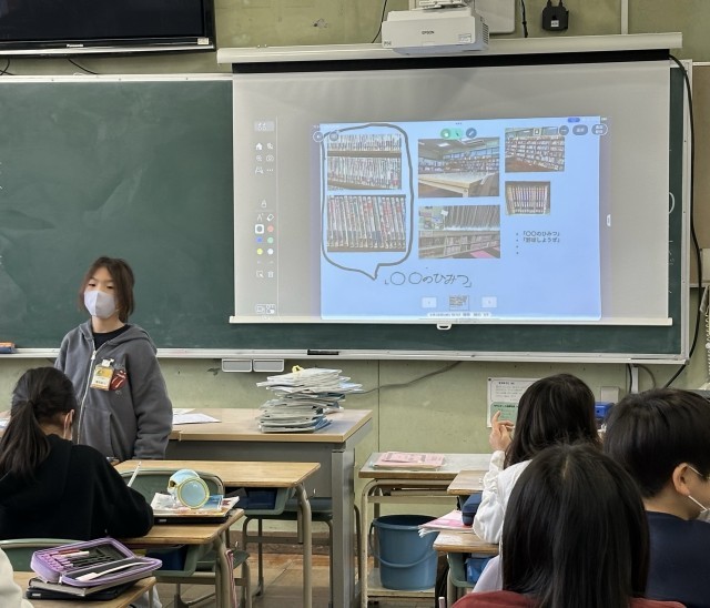 国語の授業で小学校のお気に入りの場所を紹介しました。小学校の中で自分がお気に入りの場所とその理由を考えて、みんなの前で発表しました。原こうを見ないで、写真を見せながら相手に伝わるよう工夫しながら発表できました。
