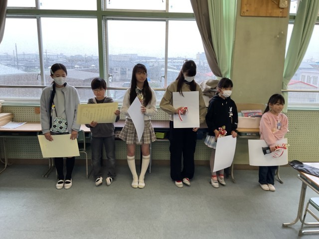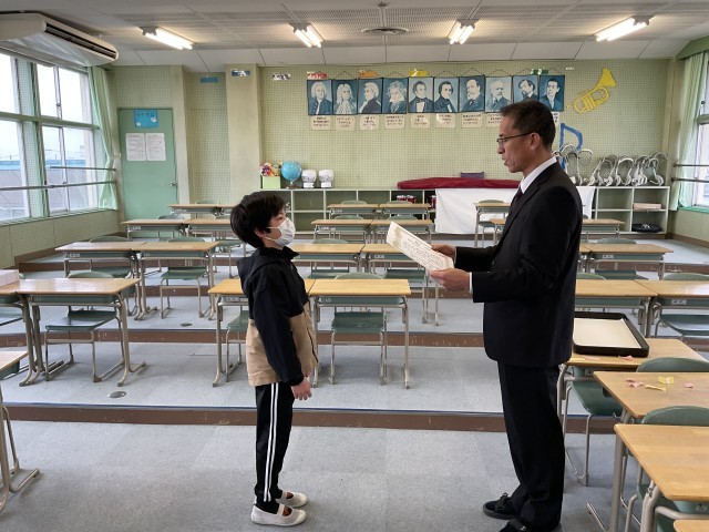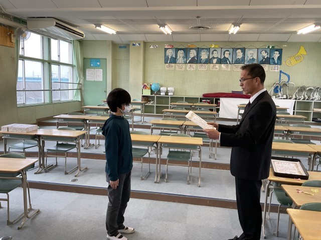 表彰伝達や全校児童で歌う最後の校歌がありました。