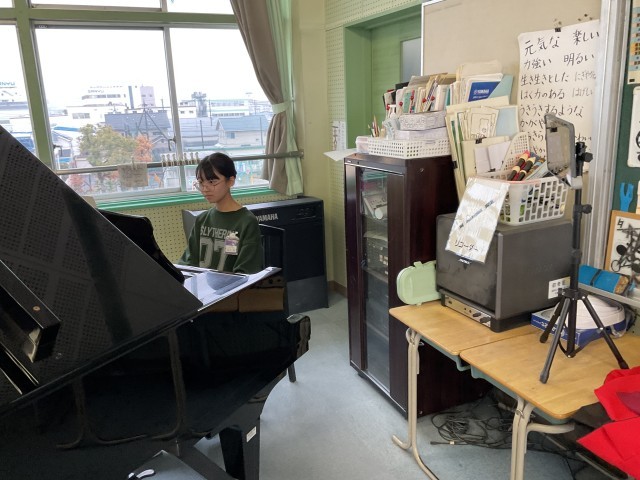 全員の歌声を三ツ渕小学校に響かせていました。