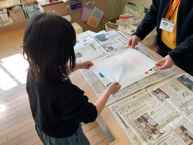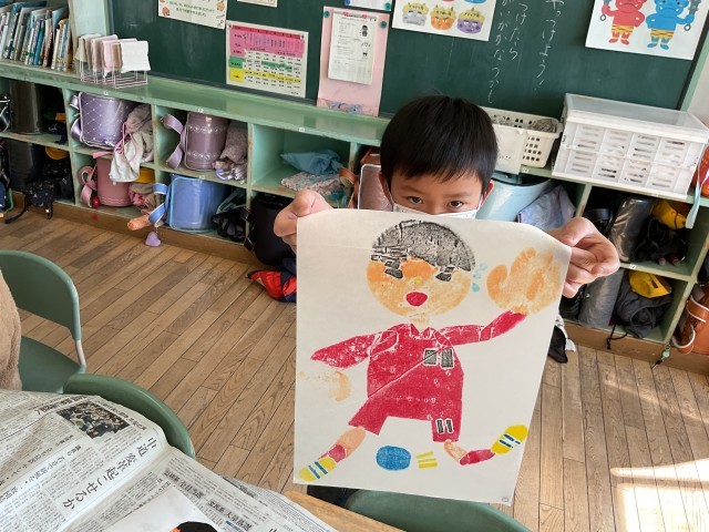 この日はバレンを使って実際に刷ってみます。最初はドキドキしていたけれど、友達や先生に手伝ってもらって大成功!