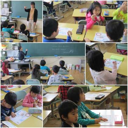 1年生・・・字を書くときの「えんぴつ」の持ち方も大切・・・。