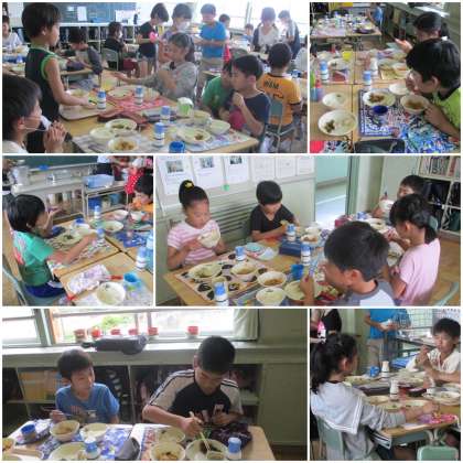 今日の給食の献立は、「ごはん」「だいこんの韓国風煮」「しゅうまい」「ほうれんそうのごまあえ」でした。明日が学校公開日代休日値なるため、今週最後の給食となります。給食当番だった子どもが、エプロンを持ち帰ると思いますので、洗濯をよろしくお願いします。