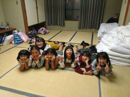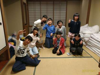 女子も元気一杯!これから夕食です。ぜいたくな部屋食です。